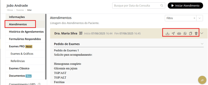 - Clique na opção, Iniciar Atendimento;