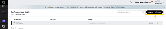 - Na aba Profissionais da Saúde, clique na opção Convidar Profissional.