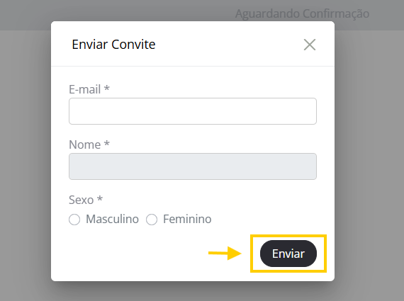 - Após clicar no botão Convidar Profissional, informe o E-mail, Nome e Sexo do seu convidado. Após isso, clique em Enviar.