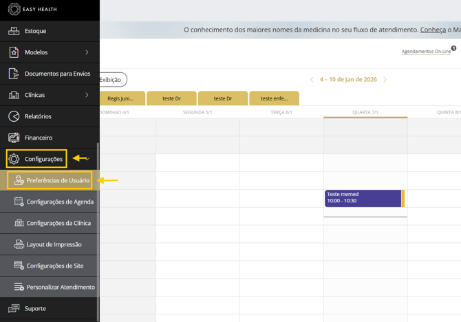 - No Menu Lateral, iremos navegar até a aba Configurações e clicamos em Preferências de Usuário.