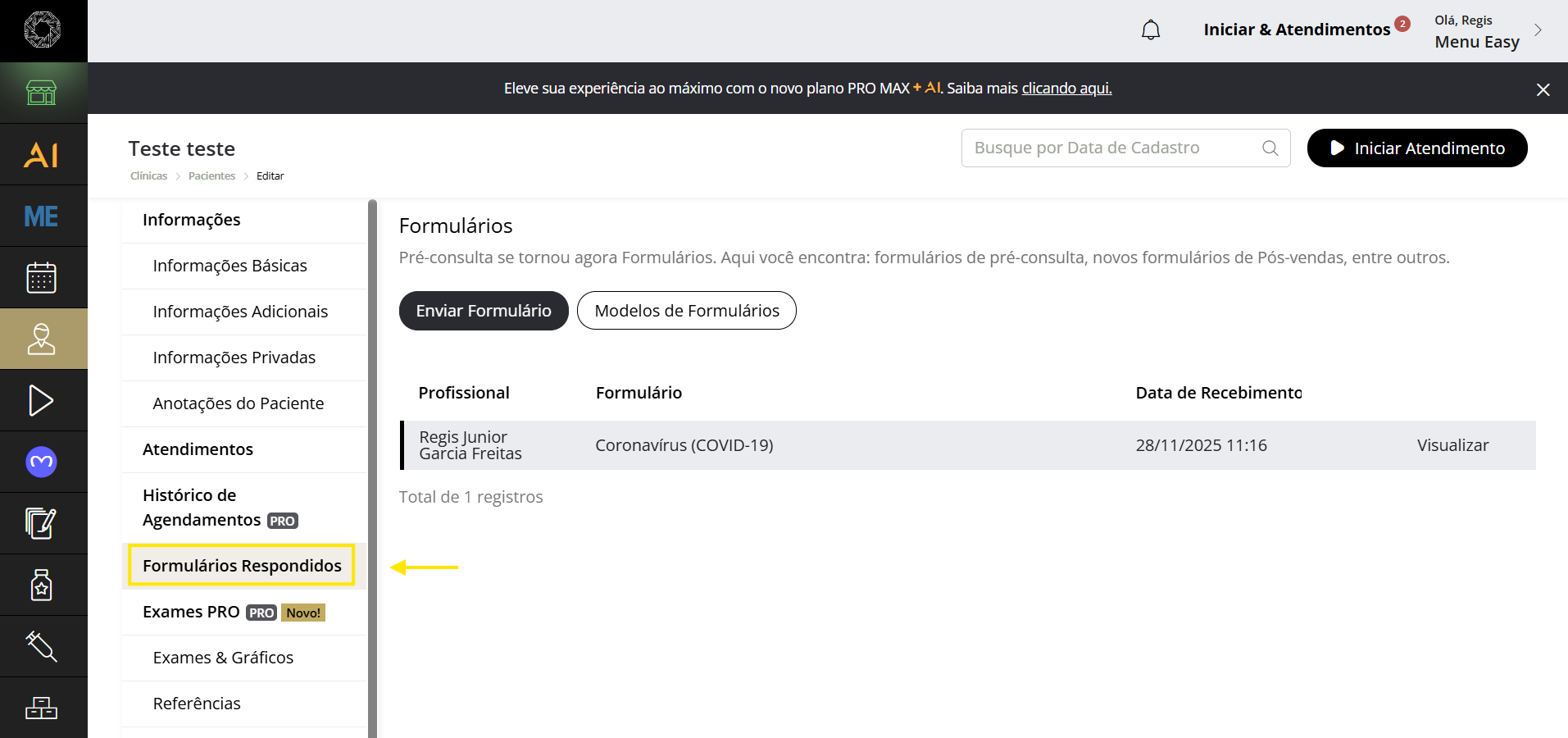 Para visualizar as respostas que seus pacientes preencheram nos formulários criados, basta seguir os passos abaixo: