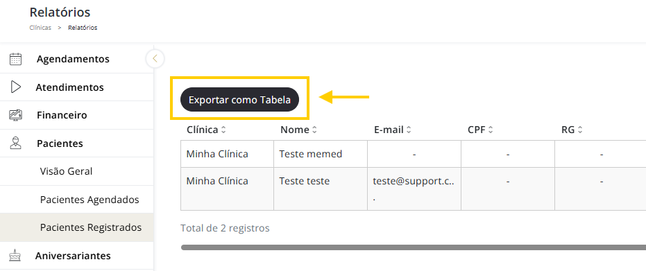 Preciso dos dados dos meus pacientes, consigo extrair do sistema?