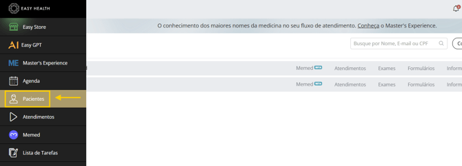 No Menu Lateral, clique em Pacientes.