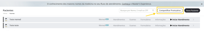 No menu Pacientes, iremos clicar Compartilhar Prontuários.