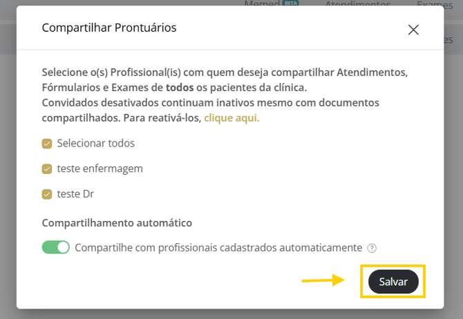 Após clicar em Salvar, os profissionais desejados já terão acesso aos prontuários.