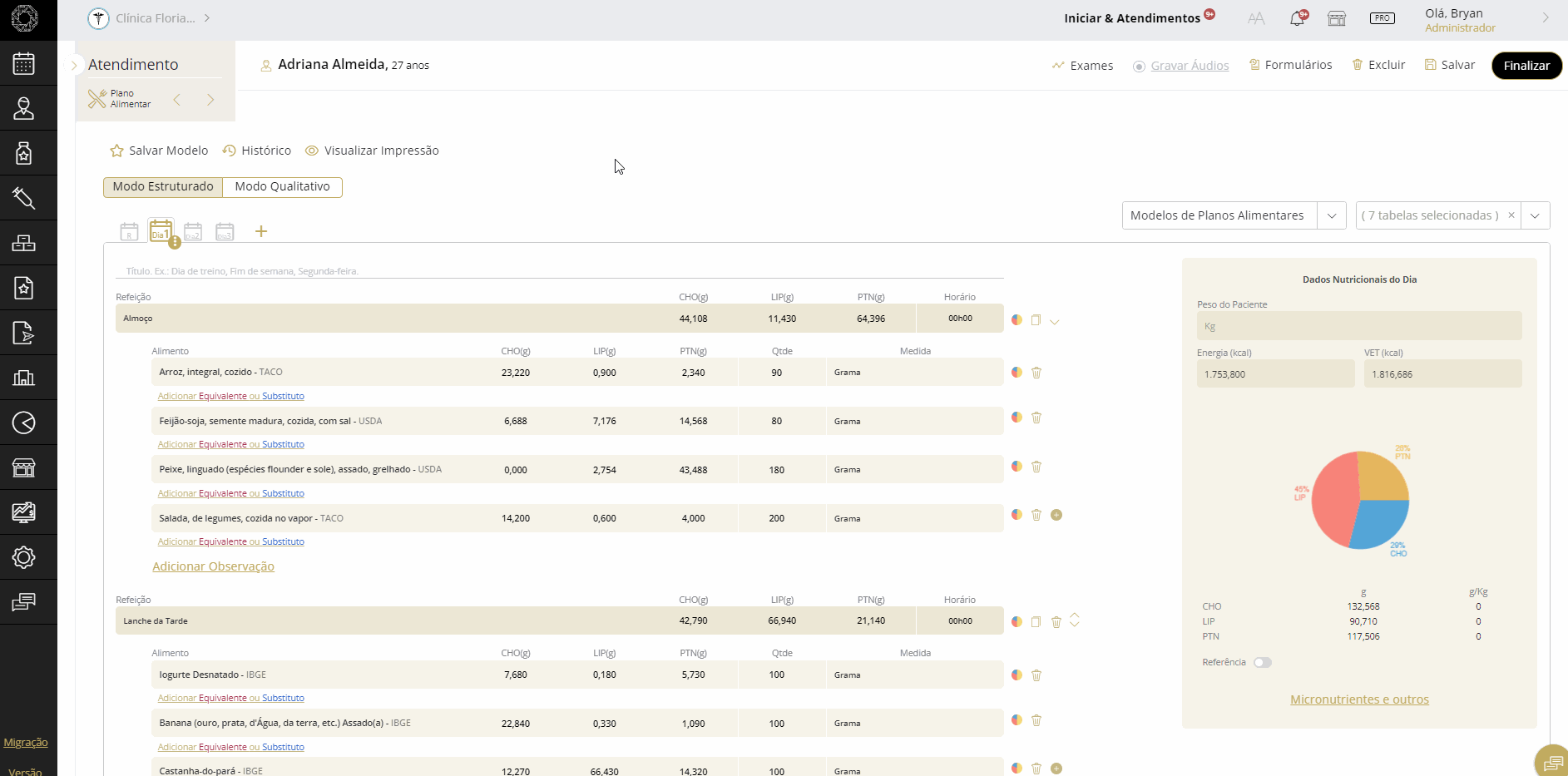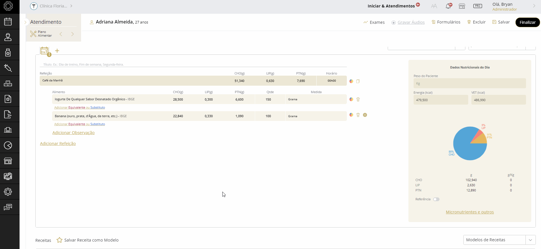 - Pacientes > Iniciar Atendimento > Plano Alimentar;